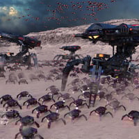 Gathering in impact groups with the support of a UFO in the air and smaller crabs too, the Dominator force attacks in an avalanche, sweeping everything in its path.