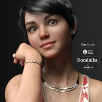Dominika comes to you today in the new Genesis 8 figure with HD feature built at SubD Level 4. Beautiful white skin, perfect teeth of a pearly whiteness, and her large eyes, tempered by the most attractive defined figure comes to you today in beautiful HD textures (4096x4096) including a realistic skin including scars and blemishes for a realistic look all from high quality reference photos. Boasting 11 Eye colours, 10 L.I.E Make-up options, 10 L.I.E Lip colours and 10 Nail and Toenail options.