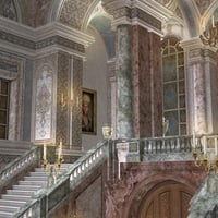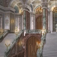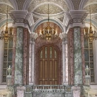 Domino Palace is an ornate texture set for Redhouse Studios' Palace Entrance and PE Fixtures and Fittings, featuring rich marble columns, carved wood doors and tiled floors. The detailed high resolution texture maps are suitable for close-up renders.
