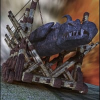 Introducing an impressive battering ram that will give any castle's gates a serious pounding. Fully jointed to give forward movement with 16 rotating wheels. Four easy pose ropes trail at the rear to be used by the DAZ Troll or any other formidable warrior. The battering ram is detailed with textures of wood and iron and comes in two versions, one with chains and the other ropes. The latter being a little less in terms of the polygon count.