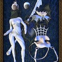 The outfit has a lot of details from the interlaced straps to the wing like side skirts. The set also comes with a ribbed cape, and skullcap style helmet, there is also a slicked back tight hairstyle.