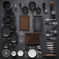 Choose from a variety of props, including skillets, saucepans, and frying pans in various sizes, an array of knives, and a collection of utensils, allowing you to customize your kitchen scenes with ease. Our versatile and user-friendly models provide realism and detail for any kitchen setting. This collection is a must-have for both beginners and experienced 3D artists. Create the perfect kitchen scene and showcase your culinary artistry with this comprehensive set of assets.