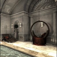 Driftwood Spa & Pool is the ideal place to wind down after a long week. The ornate dome ceiling with gothic accents accompany the sleek shiny marble walls and ceilings. Lighting provides a touch of mood and seating is provided with the inclusion of traditional loungers and a contemporary swing chair.