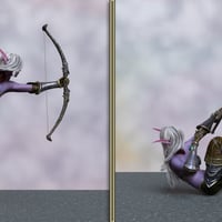 Each pose in this set is meticulously crafted to showcase the agility, stealth, and lethal grace of a Drow Elf archer, from drawing the bowstring and taking aim to scouting and tracking her prey. Whether Lianna 9 is perched high in the trees, stealthily creeping through the shadows, or releasing a flurry of arrows in rapid succession, each pose exudes a sense of focus, power, and elven elegance.