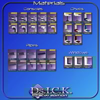 DAZ Studio Indoor Creation Kit SciFi Edition, or "DS.I.C.K.", was designed for the accurate, realistic and flexible creation of indoor SciFi DAZ Studio scenes. The components were modeled to seamlessly integrate with each other while giving the flexibility to create the SciFi scene YOU want. Modeled in exact scale with extreme accuracy in both models and textures DS.I.C.K. SciFi provides the "tools" needed to set up a realistic indoor SciFi scene within minutes. Whether you want a communications bridge, a corridor or a full space station or space ship interior DS.I.C.K. allows you to build the scene you have in mind rather than being stuck with preset sets.
