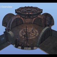 A dungeon holding room connected to three identical cells. The cell doors can be opened and closed. The scene uses tileable textures for all materials, allowing it to easily transform into a different theme. DAZ Studio lights, materials, and cameras are included.