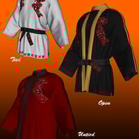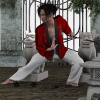 The Dynamic Martial Arts Gi for Michael and Victoria 4 is a piece of dynamic cloth designed by Optitex & SimonWM and rigged to Michael 4 but that has been tested for both Michael and Victoria. Since the rig in a dynamic cloth acts only as preliminary positioning of the clothes and the simulation takes care of placing the clothes correctly around the model's body, this type of loose robe fits perfectly on both male and female version of the unimesh.