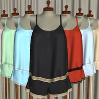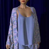 The set includes an open and closed robe in 7 satins and 4 flannels to pair with vintage style cami top and tap pants. Material files will work in Studio 3 and 4 and clothing can be used on V4 with an animated drape.