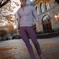 This outfit features a high-quality quarter-zip knit sweater, tailored trousers, and leather-style ankle boots. The sweater is designed for flexibility in your storytelling, provided in four separate mesh variations: Collar Open, Collar Open with Sleeves Rolled-up, Collar Close, and Collar Close with Sleeves Rolled-up.