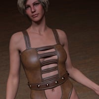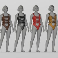 This sleek outfit features a strappy cutout design and a wide, studded belt detail built into the waist. It's perfect for sci-fi, cyberpunk, or fashion-forward scenes where attitude and style matter.