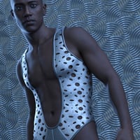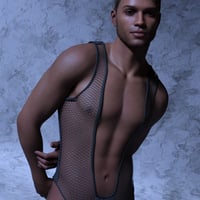 The Majesty Mesh outfit for Genesis 9 Males and Females features a daring, high-cut bodysuit design with a deep scoop neckline and intricate mesh pattern for a modern, edgy look.