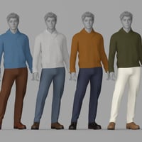 Upgrade your runtime with the sophisticated yet relaxed Oxford Casual set. This contemporary 3D clothing outfit is designed for the modern man, perfect for autumn scenes, office settings, or smart casual outings. The pack features a detailed shawl collar knit sweater, a pair of tailored trousers, and sturdy lace-up ankle boots.