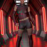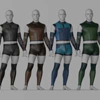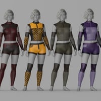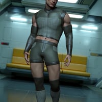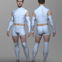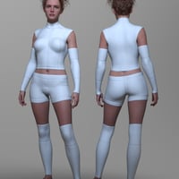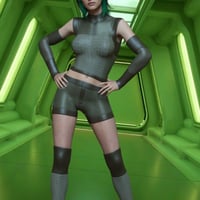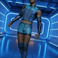 This modern sci-fi outfit set, RavageZ2, is designed for Genesis 9 Males and Females. It includes a sleeveless top, short tights, arm guards, and leg guards, all with a sleek, futuristic vibe. With eight texture presets, it's perfect for action, adventure, or space-themed scenes.