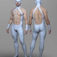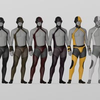 This futuristic outfit includes a sleek mask, a dynamic bodysuit, and a pair of wristbands, all available in 6 unique color textures.