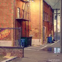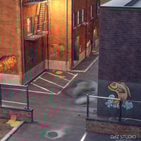 Also includes a full scene with an alleyway populated with props and several different camera angles to choose from.