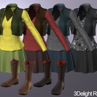 Vest, Shirt, Skirt and Western Style Boots set for Genesis 3 Females. Four color options for Vest, Shirt and Skirt, 2 color options for Boots.
