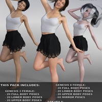Pose presets were adapted to Genesis 3 Female and Genesis 8 Female, plus Sakura 8.