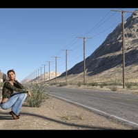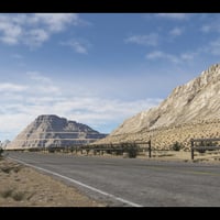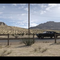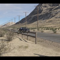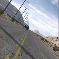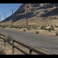 Road to Nowhere offers a detailed stretch of open road running straight through a desert mountain region.