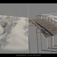 The bridge stands and the snow are separate object layers, allowing you to hide them if you want to use the environment in other scenes.