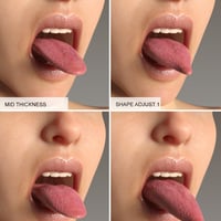 Make the tongue longer (even extremely long), make it extra floppy or curly, adjust the thickness and width, curve it or adjust its shape. There are almost endless possibilities. Included are separate controls for the tongue and the tongue tip for the most flexibility possible.