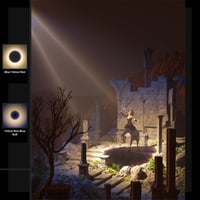 Eclipse Lights is a large set of spotlights with a wide variety of effects for your sci-fi, fantasy, horror, and contemporary scenes. Most of the presets are built from 5 spotlights representing the sun (primary light), chromosphere (large outer glow), inner corona (ring of light around the shadow), a moon shadow, and space (a wide spotlight for ambient light). The spotlights use familiar settings like light geometry to add shape and softness to the light and shadow. The moon shadow can be moved to show different phases of the eclipse, and the presets can be scaled to fit your subject matter.