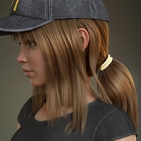 Eden stands out with this long hair, tucked into a casual baseball cap. Made specifically for Eden, this hair shows off her tomboyish charm.
