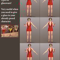 Use 6 Drinks Partial Poses to give a drink to your already posed character, or apply 60 Drinks Wearable Poses to instantly transform your zero-posed figure into a dancing, flirting beauty with a glass in hand!