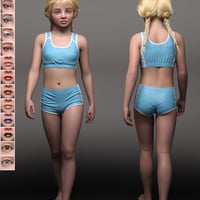 This stylized young lady comes with several eye, lip, and nail colors, plus a collection of makeup to mix and match. Choose from a full-character preset or separate head and body presets.
