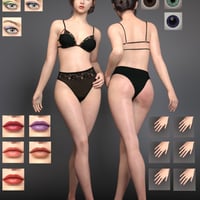 This stylized young lady comes with several eye, lip, and nail colors, plus a collection of makeup to mix and match. Choose from a full-character preset or separate head and body presets.