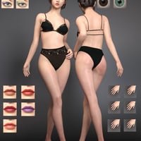 This stylized young lady comes with several eye, lip, and nail colors, plus a collection of makeup to mix and match. Choose from a full-character preset or separate head and body presets.
