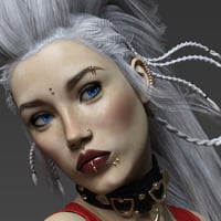 Character is custom sculpted in ZBrush with some help adjustment with Genesis 3 Female Body Morphs and Victoria 7 morphs.