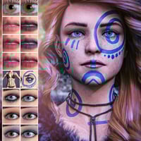 Elandra for Genesis 8.1 Female was sculpted in ZBrush and painted in Photoshop and Substance Painter. She comes with a full set of makeup, lips, eyes, nails, and FiberMesh brows. Also included are LIEs for face and body paint, smudged eyeliner, and extra face details.