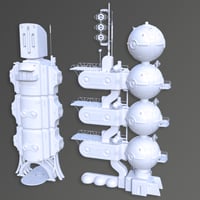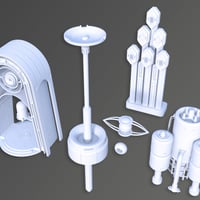 The set includes props of three houses, towers, arches, tanks, pillars of stands for flying houses and plates. Create your fantastic cities of the planet Gaya and explore.