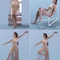 This set includes 40 elegant and essential unique poses, plus a few alternative versions and one animated pose to use with the dForce Hammock Chair that comes with it. Other props included are a podium, a designer's chair, and 3 pillows, all of them with lots of materials and shaders. From simple and natural, to more complex and sophisticated poses, this pack has indispensable poses to make your beautiful ladies even more stunning, may it be by herself, or hanging with her friends.