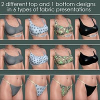 This swimwear set includes 6 different types of fabrics that you can customize to your liking, and is ready for any photo-shoot, vacation, or day on the beach.
