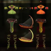 The Fantasy outfit for Genesis 2 Female(s) with two material options. It also comes with a harp prop.
