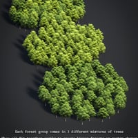 This set contains 10 unique fast rendering and super low poly billboard aspens, along with a wide variety of tree groupings and forests to quickly populate your scenes with a high number of trees. Billboards are a perfect way to add a lot of detail without hitting memory limits so the props in this set are great for low and high spec computers alike. Clever normal/bump map translucency usage make these billboards interact with lighting more realistically than ever. Included are material options for each tree in 3 different lighting situations with 3 different seasons to help get your forests realistically matching scene lighting quickly and easily.