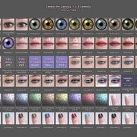 Emma is an elegant and sweet female character, a classical beauty with fair skin, and lots of different colors of eyeshadows, lipsticks, eyes and nails, also including one LIE eyeliner and two different options of mascara. The eyeshadows also include the option to add metallic effects and choose the colors, if applying the eyeliner with said effects, apply the eyeliner last.