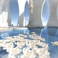 In this heavenly paradise, majestic colonnades rise like beacons of light, while water lilies gracefully glide on the breath of the divine, their iridescent petals gently caressing the souls of the chosen. Some have described it as a palace of pure light, where vigilant archangels watch over every breath, every beat of wing, since the dawn of eternity.