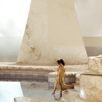 Here is a dress made of pleated chiffon, voluptuous and majestic, with long sleeves and an impressive train. A collection of textures accompanies this product.