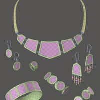 A beautiful and bold jewelry set for your Genesis 9 characters! There is a mixture of parented props and figures in this set. All the props can be easily moved and adjusted. The link bracelets and necklace are conforming figures that include many of the popular Genesis 9 character morphs out of the box but they also harness the power of rigidity mapping and will smoothly fit nearly every Genesis 9 shape past and future with minor adjustments from the included adjustment morphs. As always the UVs are arranged for fantastic results if you wish to change the look with shader presets.