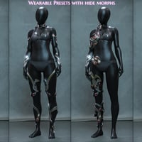 We included several Wearable presets that feature both the full pieces only, in different combinations, and the pieces with hide morphs active. These can be used as-is or as a source of inspiration for your own customization.
