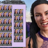 This pack contains 40 One-click presets for Babina 8 and 40 adapted to Genesis 8 Female; use them to quickly load an expression.