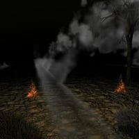 A dark, moody scene made specifically for the Eternity building. Import the Eternity building into this Bryce scene to use as a starting point, then add your own figures to complete the picture. Of course, you're not limited to using the Eternity building: feel free to use it with other props that need a sinister setting. Scene includes trees, grass, ground terrain, and fires.