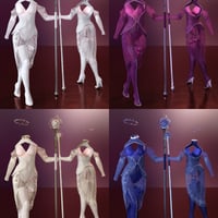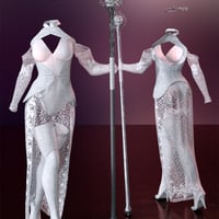 The Ethereal Luster Outfit for Genesis 9 is a full fantasy outfit designed to complement all of your Genesis Female characters, perhaps in the Elven Court, an epic Quest, or even a romantic scene.
