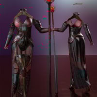 There are also Matching Crown and Staff incorporating glowing spheres which can be made to float in orbit around them with Morphs. the outfit comes with two styles of textures