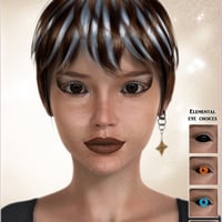 Etoixeia is a youthful, pure beauty for Victoria 6, a premiere 3D model. She can be a beautiful elemental elf or a cute youthful girl. She boasts a selection of makeups, lipsticks and eye options, which can all be mixed and matched. She features five Elemental themed body skins, which make use of displacement technology.