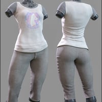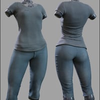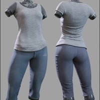 Everyday 2 is comprised of a v-neck t-shirt and capri pants. It includes 5 different styles with some variants and optimized d-force settings for the best outcome when using very dynamic poses and morphs.