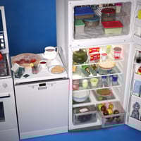 Also included: 2 bonus props - fridge and dishwasher. With all inner polys removed, these can be used in scenes as low-resource non-poseable alternatives. All models optimized for Iray.