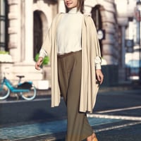 - A more business casual outfit with a hooded shawl